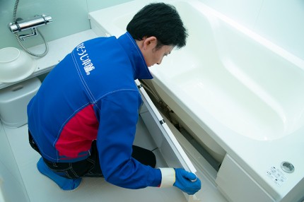 浴室のエプロンを取り外し手の届く範囲を洗浄することで、キレイにします。